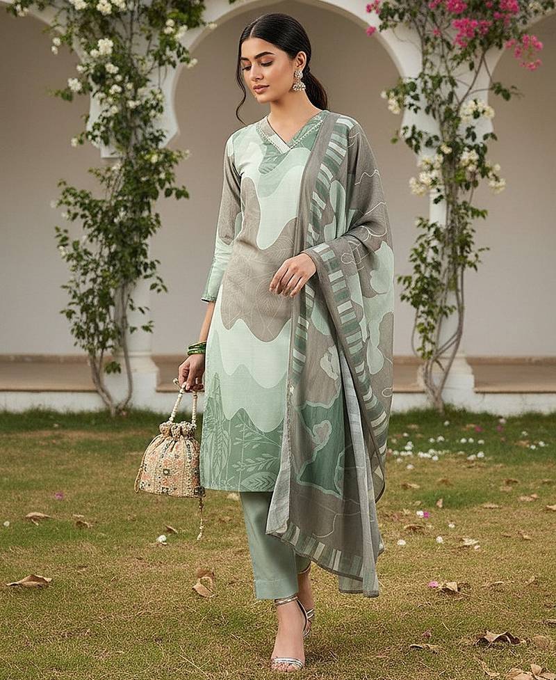 | Product Name | Women Green Rayon Blend Abstract Printed Straight Kurta Trouser With Dupatta | |