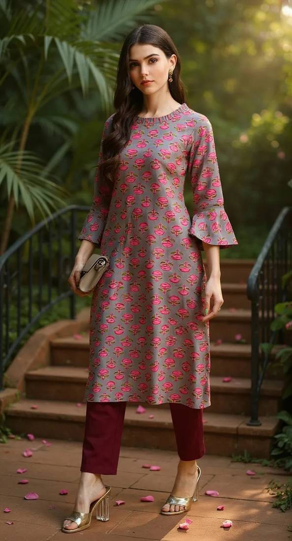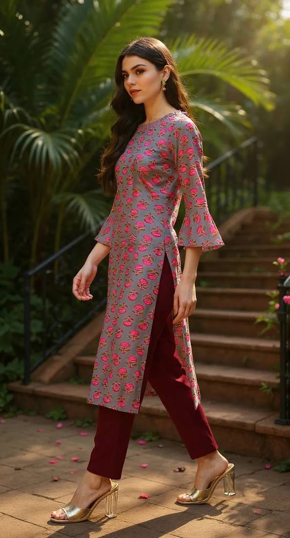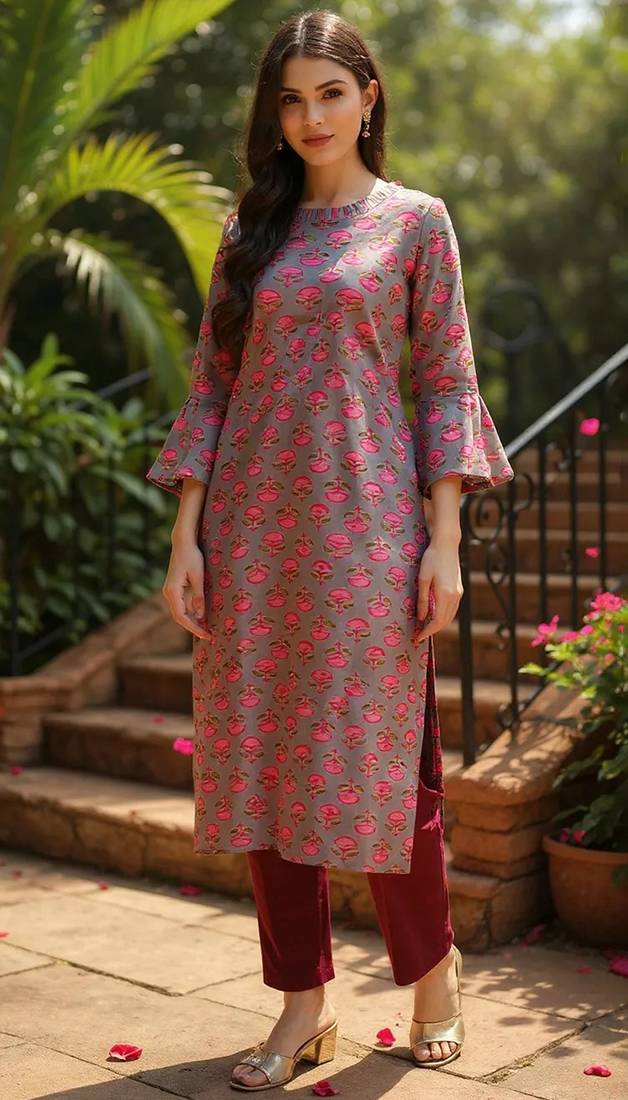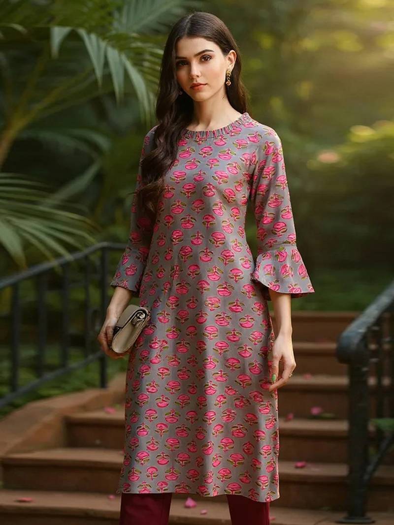 | Product Name | Women Grey Cotton Ethnic Motifs Printed Straight Kurta | |