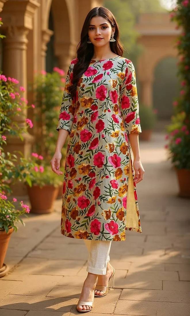 | Product Name | Women Grey Rayon Blend Floral Printed Straight Kurta | |