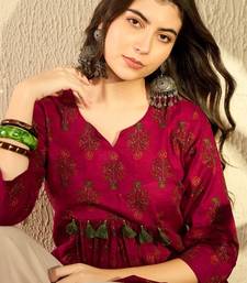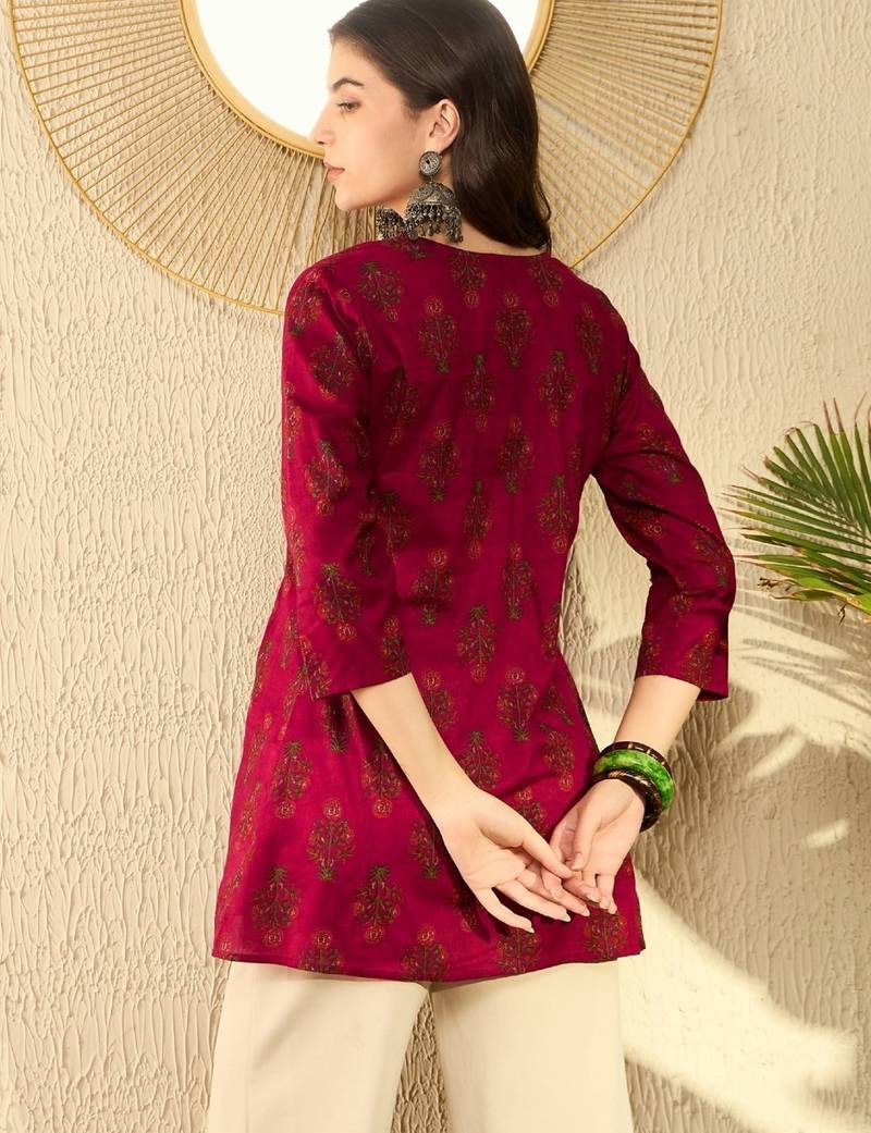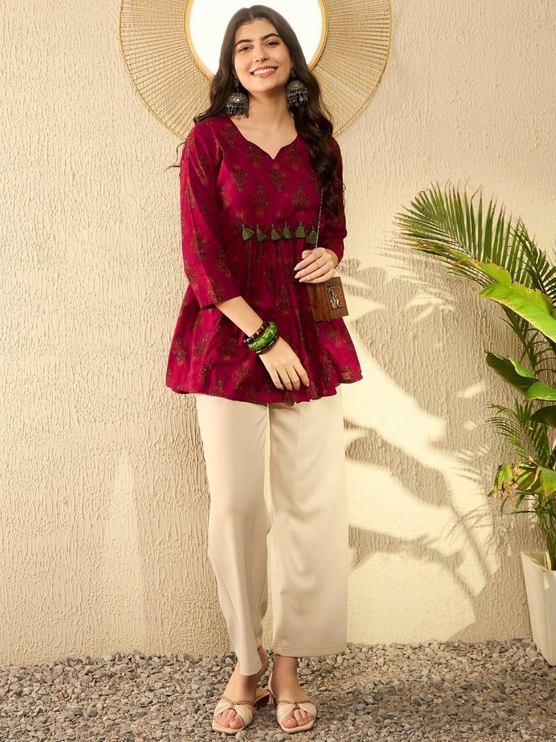| Product Name | Ahika Women Maroon Cotton Blend Ethnic Motifs Printed Peplum Tunic | |