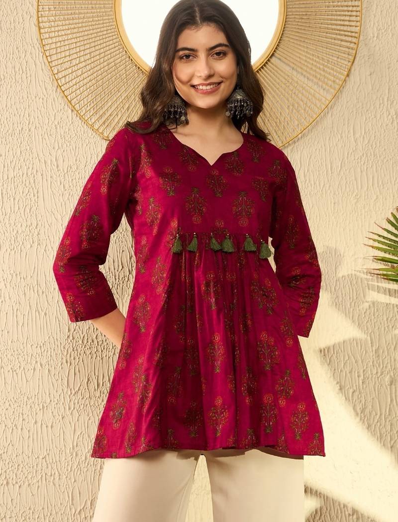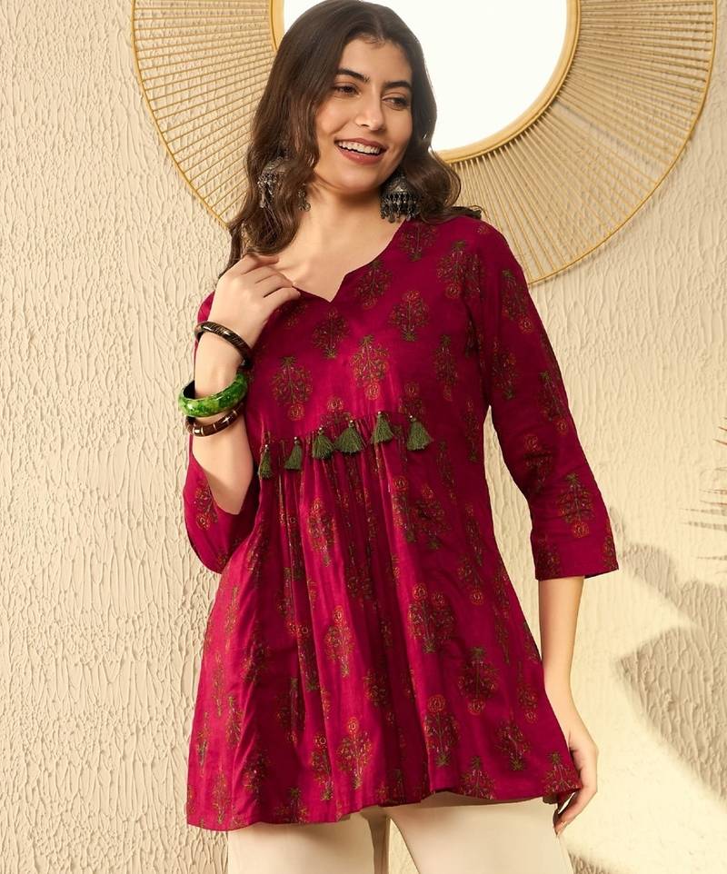 | Product Description | Buy Fancy Top From Ahika Exclusive Collection Maroon Color Women's Top High Quality Cotton Fabric, Printed Patten Styles Kurta, Ethnic Motifs Print, Round Neck Neck, Three Quarter Sleeves Regular Sleeves Sleeve Styling Kurta, This Kurta Only Offers A Luxurious Feel But Also Ensures Comfort Throughout The Day, Ahika Has Inspired Various Brands In India, While Constantly Evolving And Expanding The Product Line And Ruling The Hearts Of Loyal Customers. |