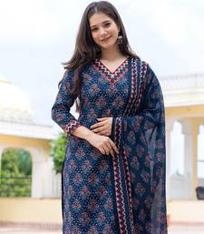 | Product Name | Women Navy Blue Rayon Blend Floral Printed Straight Kurta Trouser With Dupatta | |