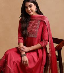 Women rose poly silk solid embroidered anarkali kurta trouser with dupatta