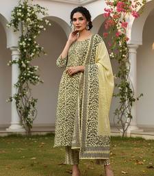 Yellow color embroidered silk blend styles kurta trouser with dupatta