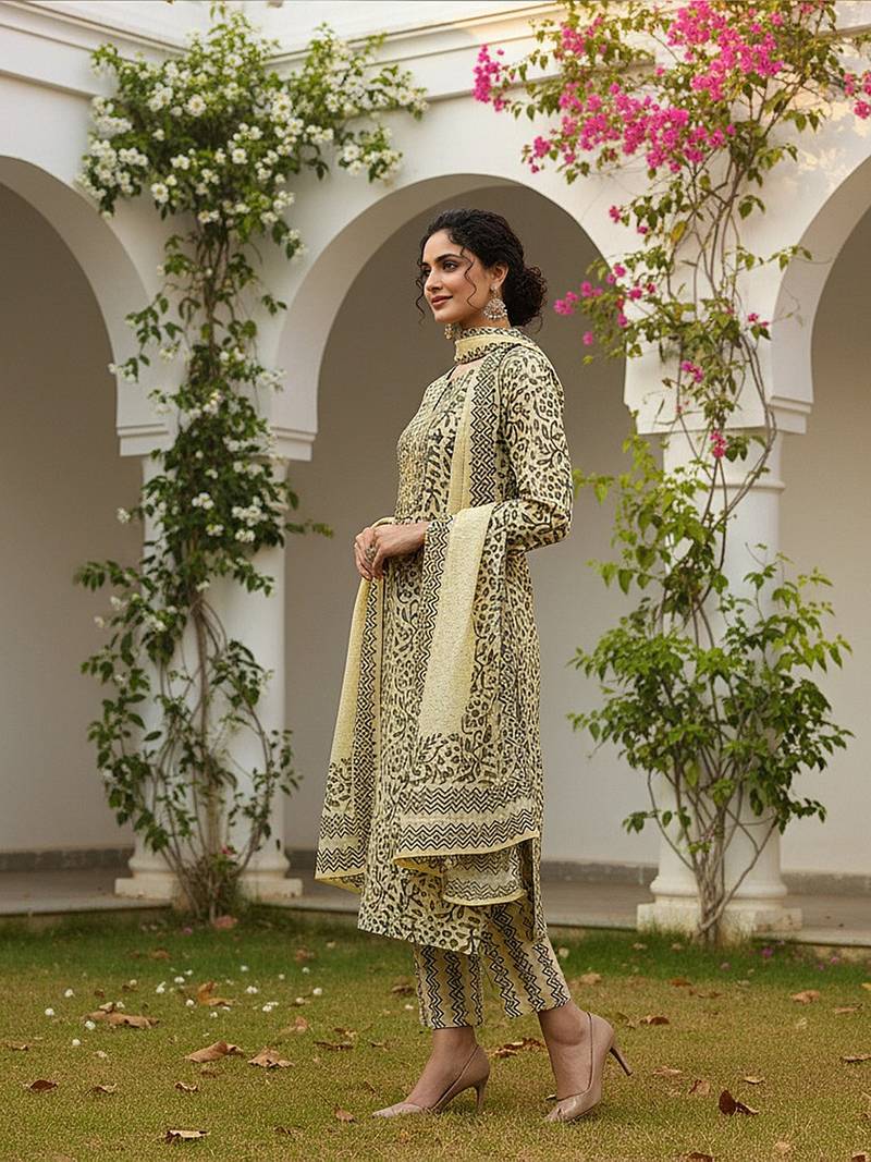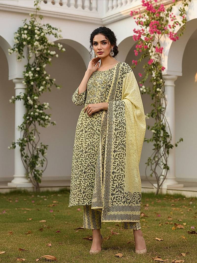 | Product Description | Achieve An Effortlessly Comfortable Look With This Yellow Colored Printed Silk Blend Dress Crafted From Silk Blend Fabric. The Floral Printed Kurta Features A Round Embroidered Neckline With Three Quarter Sleeves. It Has A Parallel Hemline And Side Cutouts Which Gives It An Amazing Look. It Is Paired With A Straight Printed Bottom Designed With A Pocket And Half Elasticated Waistband And A Printed Dupatta For A Stunning Look.