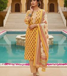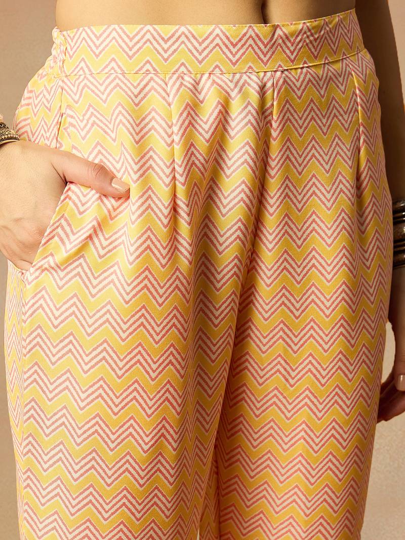 Yellow color printed rayon blend styles kurta trouser with dupatta