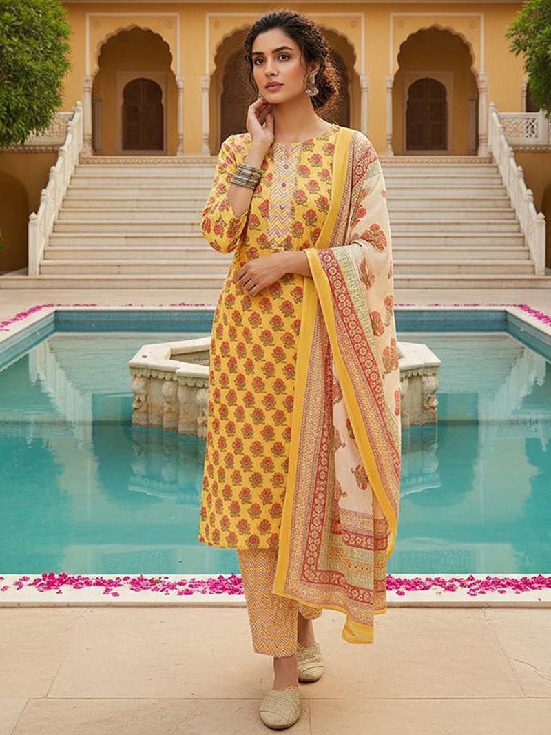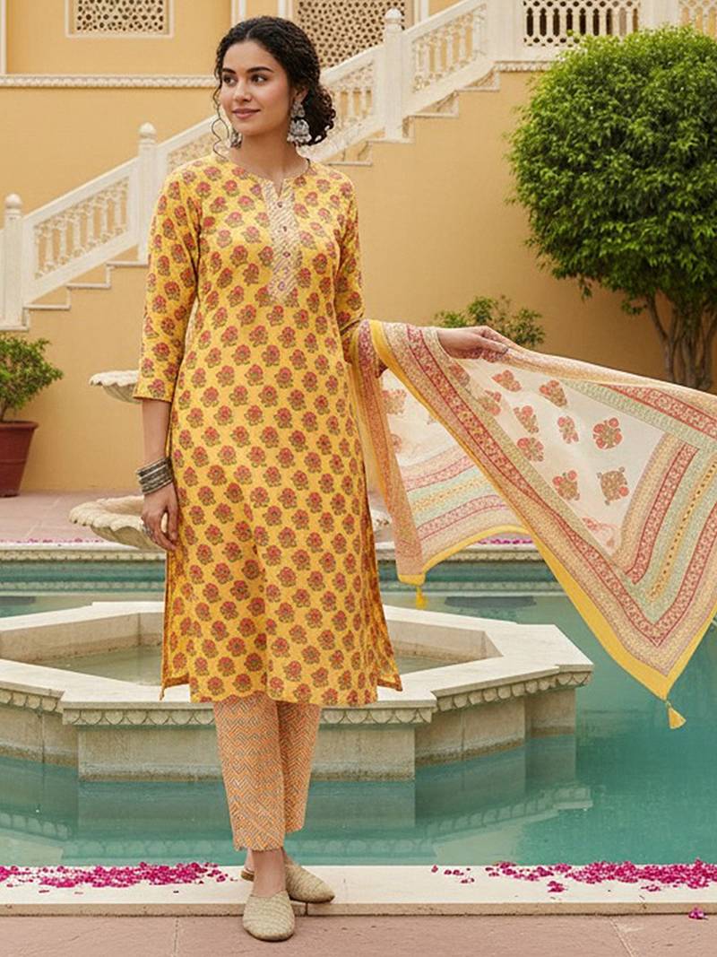 | Product Name | Yellow Color Printed Rayon Blend Styles Kurta Trouser With Dupatta | |