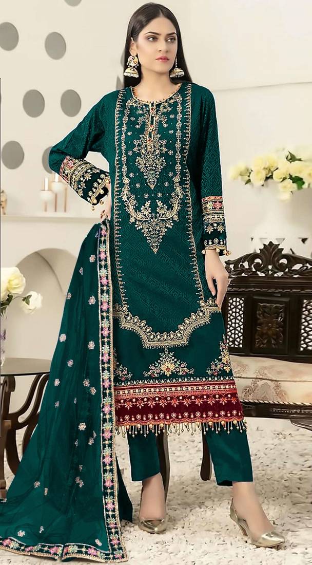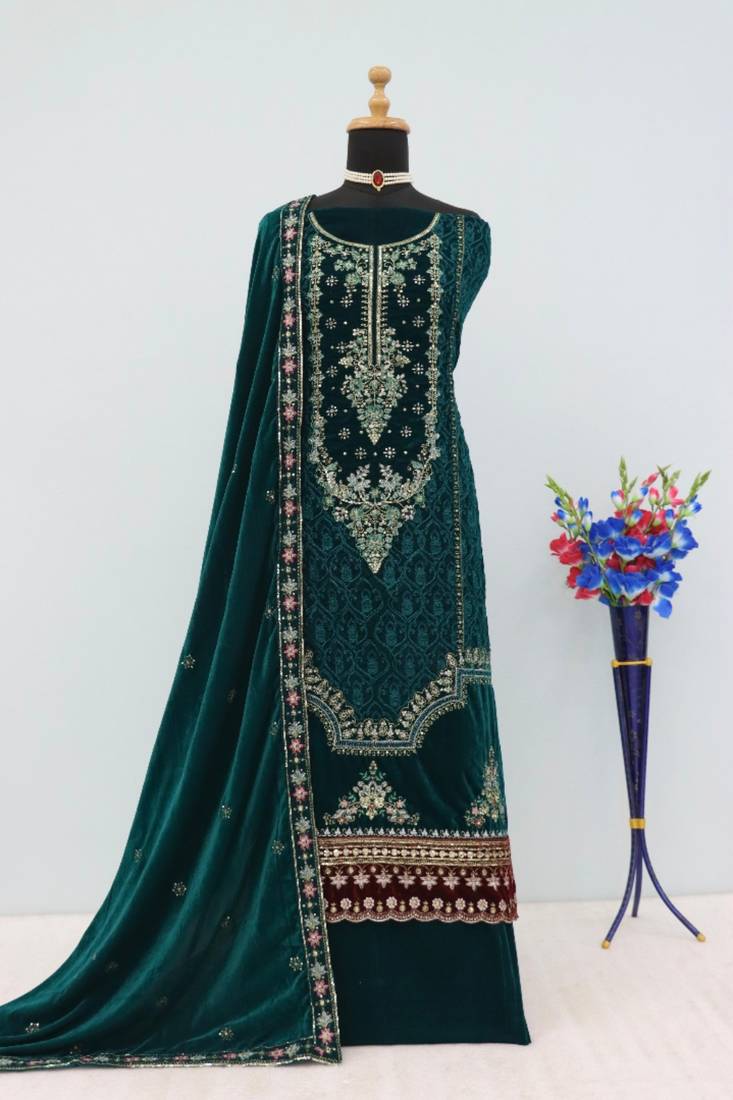 | Product Name | Dark Green Velvet Semi Stitched Suit With Heavy Embroidery & Sequence Work | |