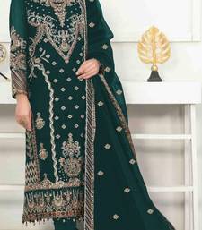Green velvet semi stitched suit with heavy embroidery & sequence work