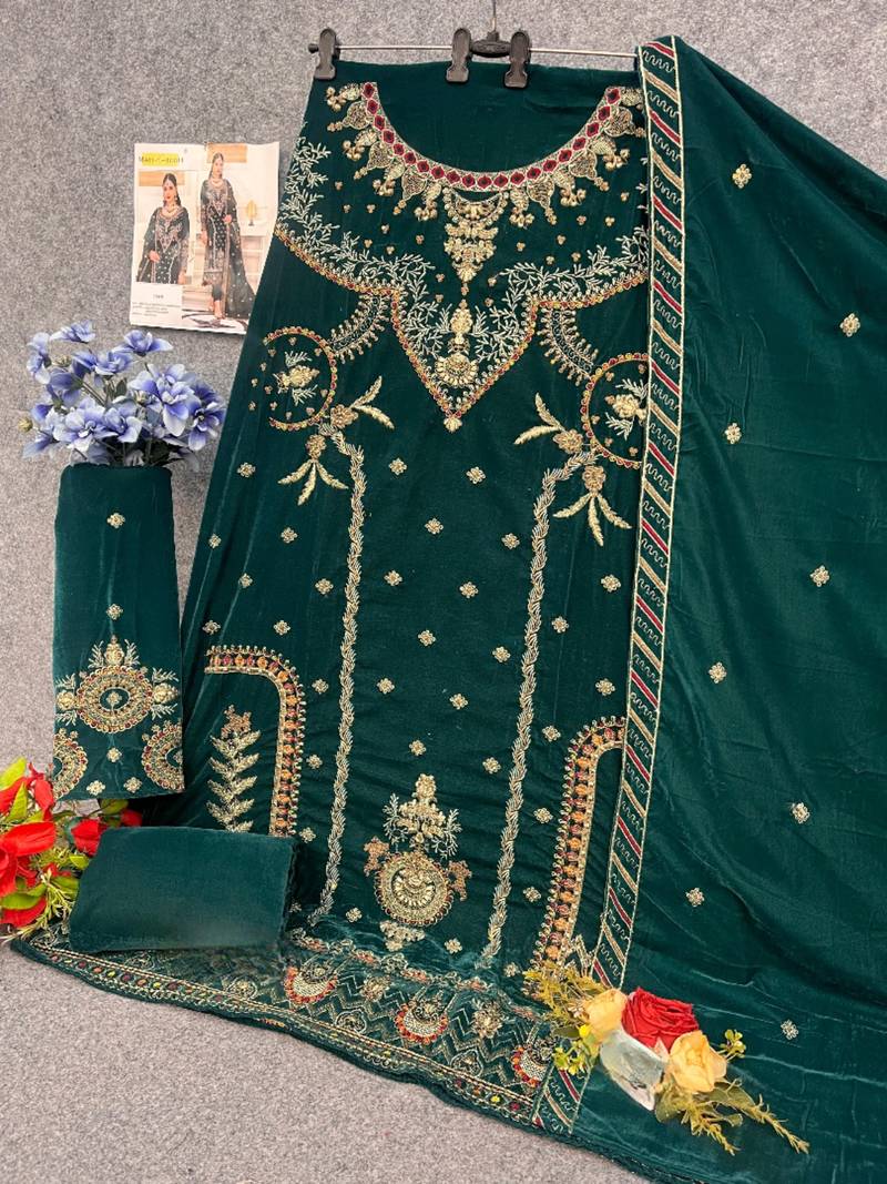 | Product Name | Green Velvet Semi Stitched Suit With Heavy Embroidery & Sequence Work | |