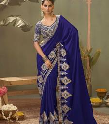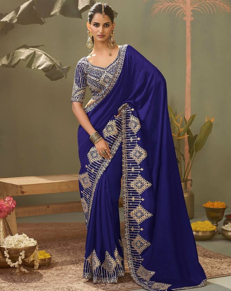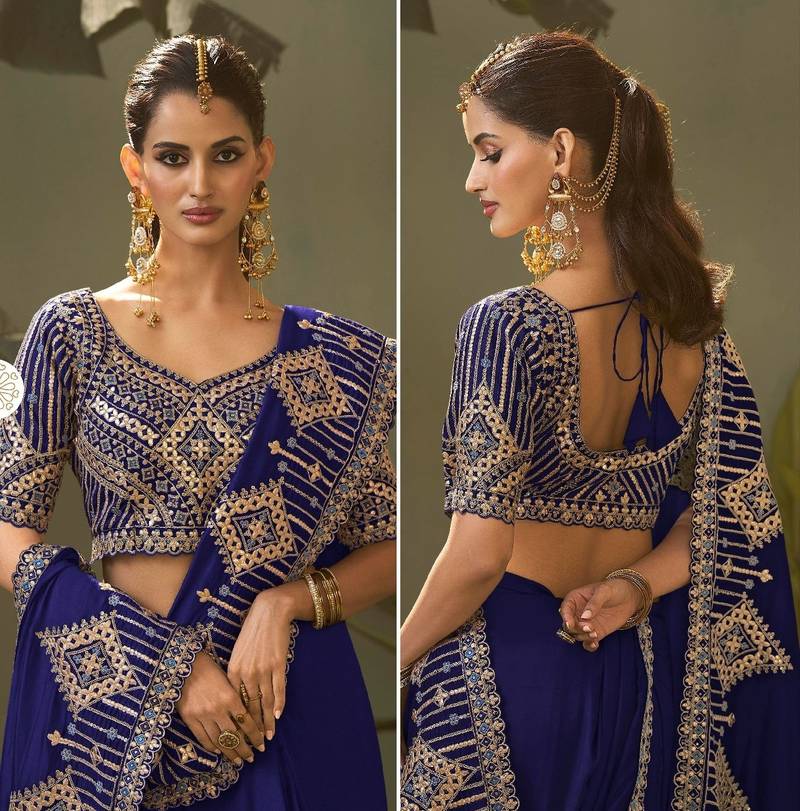 | Product Name | Blue Premium Bamber Silk Blend Embroidered Saree And Gota Patti Work With Blouse | |