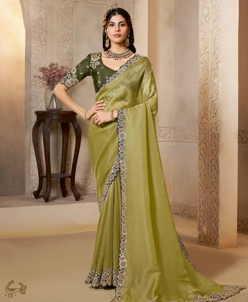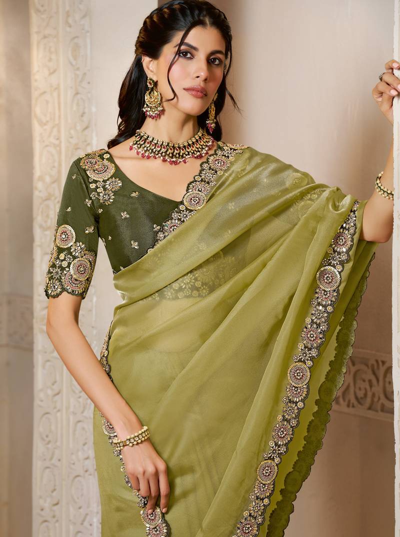 | • | Saree | : | Color- Green / Fabric- Organza |