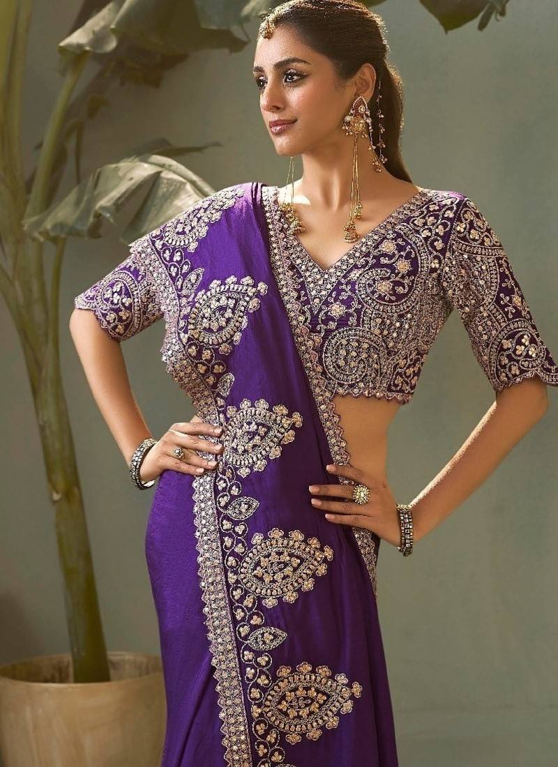 | Product Name | Purple Premium Bamber Silk Blend Embroidered Saree And Gota Patti Work With Blouse | |