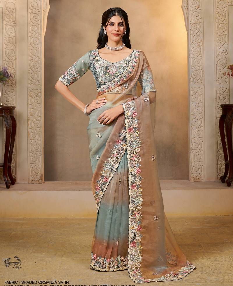 | Product Name | Shaded Organza Satin Saree With Thread & Stone Work + Blouse | |