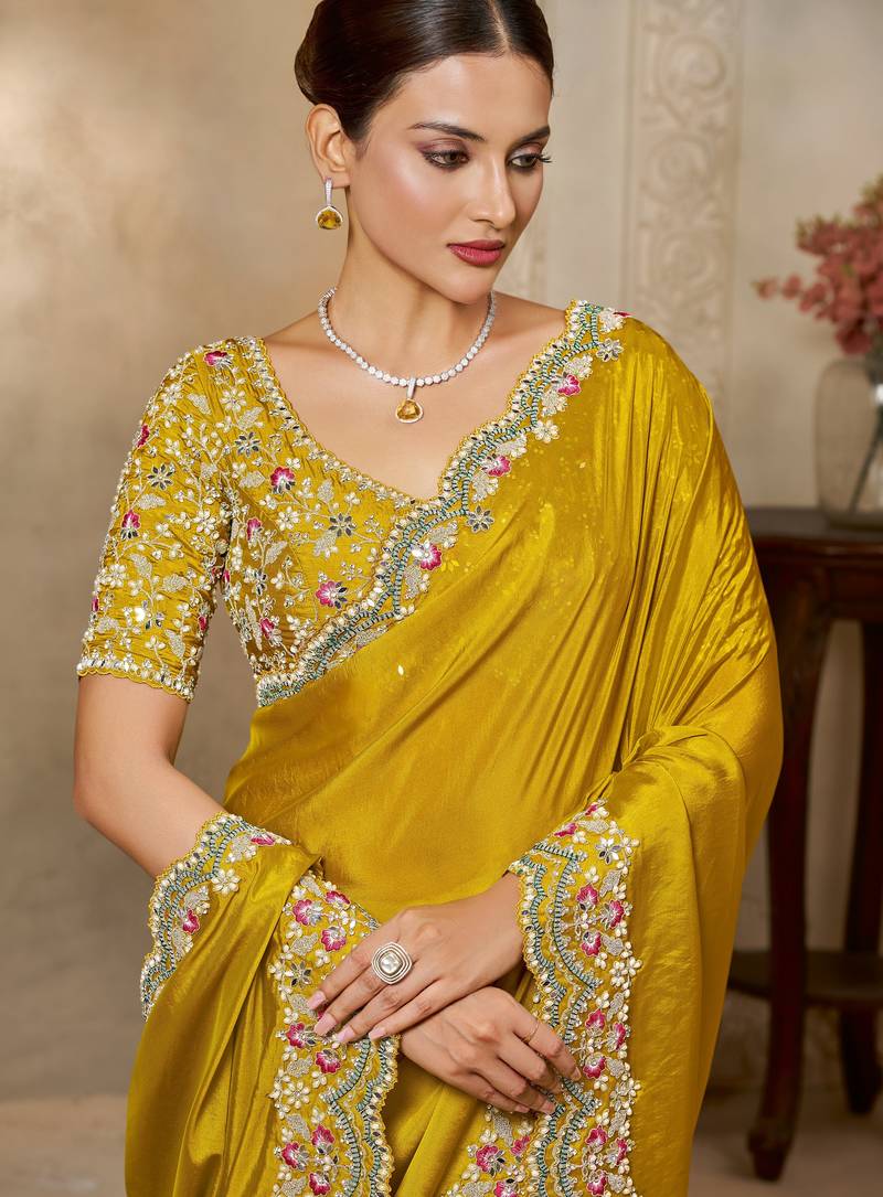 | • | Saree | : | Color- Mustard / Fabric- Silk Blend |