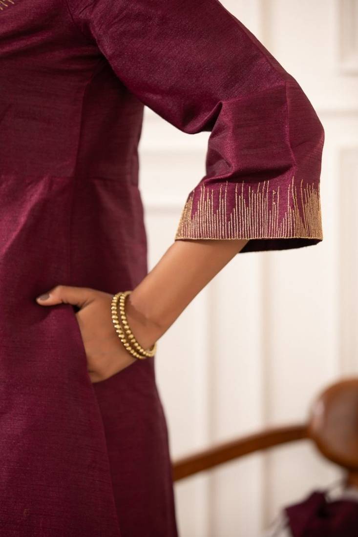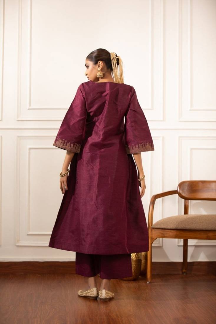 | Product Name | Purple Zari Embroidered Raw Silk Front Open Kurta Plazzo Set | |
