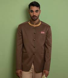| Product Description | Classic Bandhgala In Earthy Brown Tone With Beige Trousers Ideal For The Indian Wedding. |