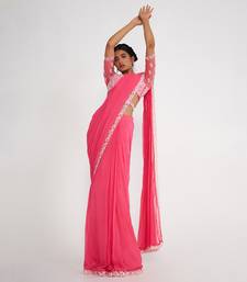 Cady candy pink pre drape saree with embroidered
