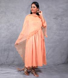 | Product Description | Peach Embroidered Chanderi Silk Kurta With Mull Embroidered Pants Paired With Organza Embroidered Dupatta. |