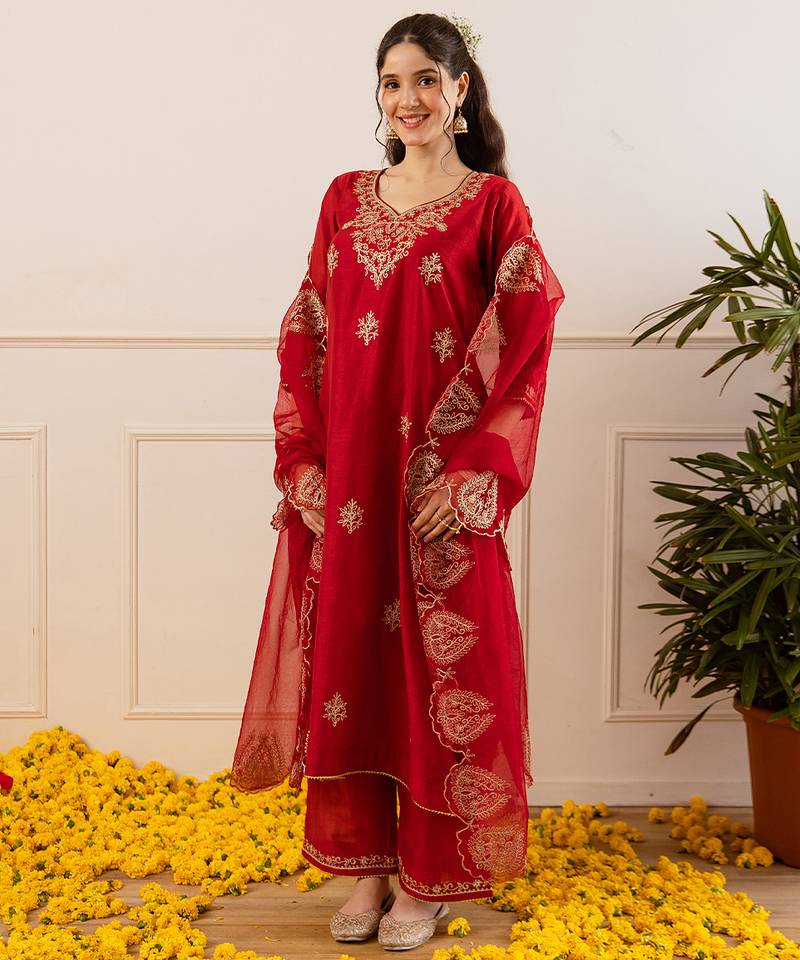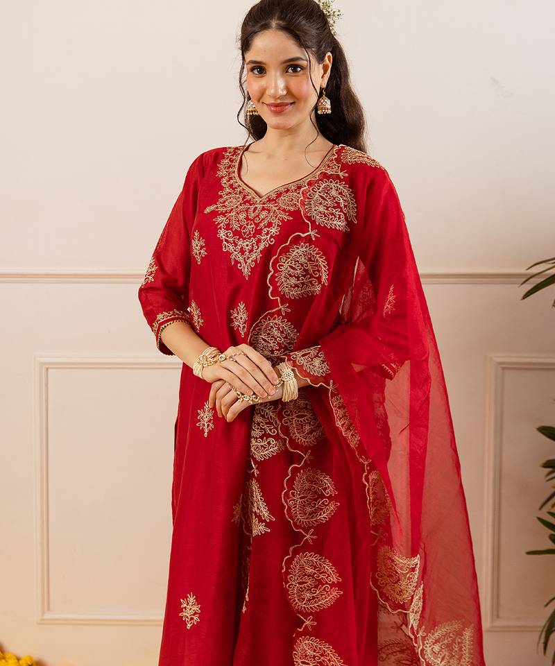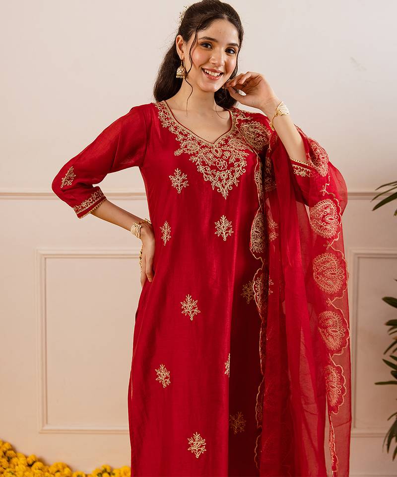 | Product Name | Red Embroidered Chanderi Kurta Set | |