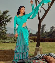 | Product Description | Sorbet Mint Green Top With Reflecting Sequins And Bugle Beads Enhanced With A Halter Neckline And Tulle Detailed Bell Sleeves, Styled With Printed Ruched Pre Draped Saree In Wistful Tones. |