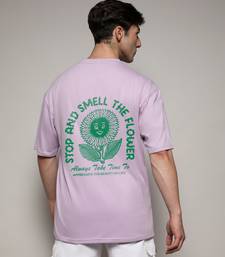 Campus sutra men's pastel lilac printed oversized basic t-shirt
