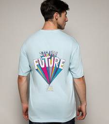 Campus sutra men's powder blue printed oversized basic t-shirt