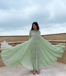 | Product Description | Ghera Dress With Voluminous Free Flowing Fabric And Couching Embroidery. |