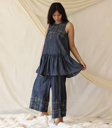 | Product Description | Vegan Denim Silk High Waisted Pants With Kantha Embroidery |