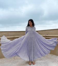 | Product Description | Ghera Dress With Voluminous Free Flowing Fabric And Couching Embroidery. |