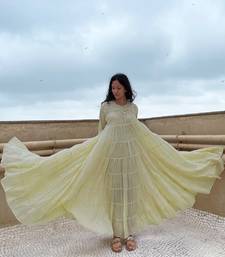 | Product Description | Ghera Dress With Voluminous Free Flowing Fabric And Couching Embroidery. |