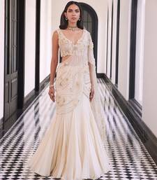 | Embellish | 3 D Flower Drape Saree ,Pointed Kali Pattern And Embllished Blouse Components : 1 Saree/1 Blouse Fabric: Organza Colour: Ivory | |