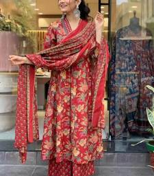 Women's floral printed anarkali kurti & palazzo set with dupatta stitched