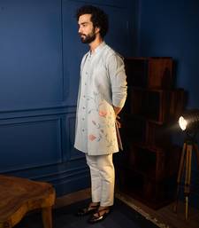 | Product Description | Hand Painted Shrug With Floral Motifs ,Comes With Shirt Style Kurta And Pants |