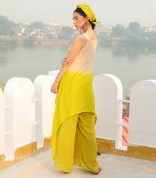 | Product Description | Half & Half Dyed ( Champagne & Neon Yellow) Tunic Paired With Asymmetric Pants. Also Available In Sea Green /Dark Green, Purple/Rust, Mouse Pink/ Rani Pink, And Any Color Combination From The Whole Collection. Fabric: Muslin Modal