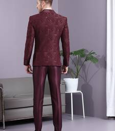 | Product Description | Men Wine Ethnic Motif Jacquard 5 Piece Tuxedo Suit With Satin On Only One Lapel And Tie Able Waist Band Having Satin On Only One Side |