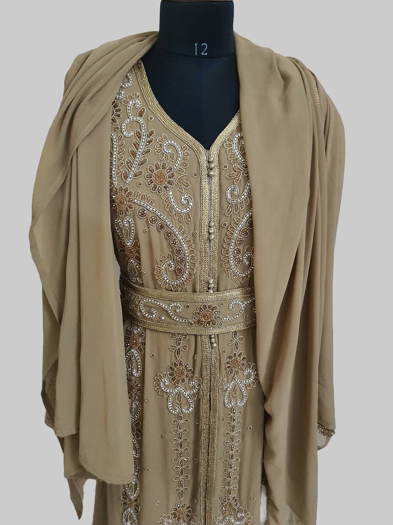 | Product Name | Beige Color Luxurious Handmade Moroccan Kaftan With Hijjab | |