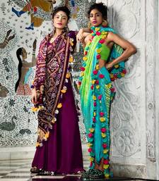 | Product Description | Turquoise And Lime Crepe Dhoti Skirt And Blouse With Dual Shade Bandhani Dupatta And Colourful Tassels. |