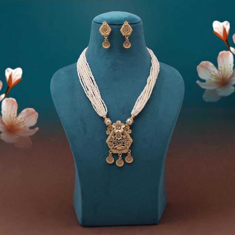Necklace Length: 40.00 Cm X Width: 1.30 Cm | Pendant Length: 6.50 Cm X Width: 4.00 Cm | Earring Length: 4.00 Cm X Width: 1.70 Cm | Metal: Alloy With Good Quality Matte Gold Plated | Color: Gold | Stone: Glass Stone & Imitation Pearl | Gross Weight: 65.00 Grams | Package Content: 1 Piece Of Necklace/1 Pair Of Earrings | Back Finding: Post With Friction Back X Earring Style: Drop