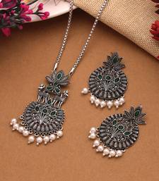 | Product Description | Adjustable Chain | Necklace Length: 42.00 Cm X Width: 0.30 Cm | Pendant Length: 7.50 Cm X Width: 3.60 Cm | Earring Length: 6.00 Cm X Width: 3.70 Cm | Metal: Alloy With Good Quality Silver Plated | Color: Green | Stone: Glass Stone & Beads | Gross Weight: 53.00 Grams | Package Content: 1 Piece Of Necklace/1 Pair Of Earrings | Back Finding: Post With Friction Back X Earring Style: Dangle |