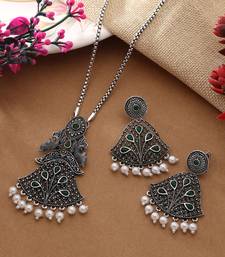 | Product Description | Adjustable Chain | Necklace Length: 42.00 Cm X Width: 0.30 Cm | Pendant Length: 7.50 Cm X Width: 4.60 Cm | Earring Length: 6.00 Cm X Width: 4.00 Cm | Metal: Alloy With Good Quality Silver Plated | Color: Green | Stone: Glass Stone & Beads | Gross Weight: 52.00 Grams | Package Content: 1 Piece Of Necklace/1 Pair Of Earrings | Back Finding: Post With Friction Back X Earring Style: Dangle |