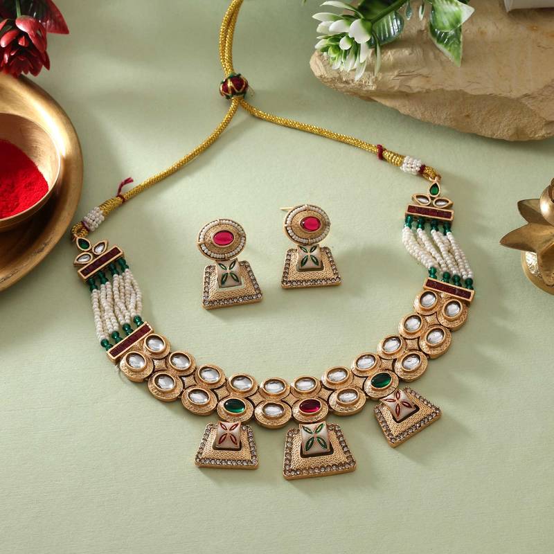| Product Name | Rani & Green Color Matte Gold Necklace Set | |