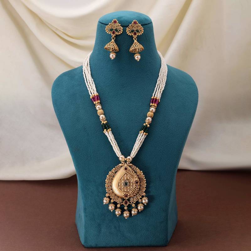 | Product Name | Rani & Green Color Matte Gold Necklace Set | |