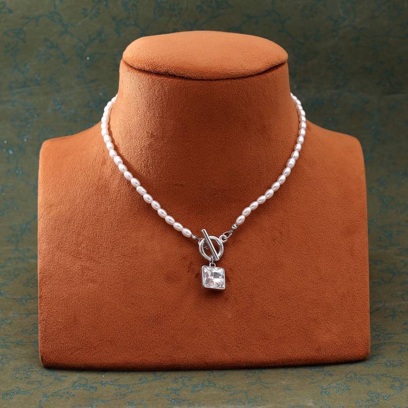 | Product Description | Necklace Length: 40.00 Cm X Width: 0.30 Cm | Metal: Alloy With Good Quality Silver Plated | Color: White | Stone: Glass Stone & Beads | Gross Weight: 18.00 Grams | Package Content: 1 Piece Of Necklace |