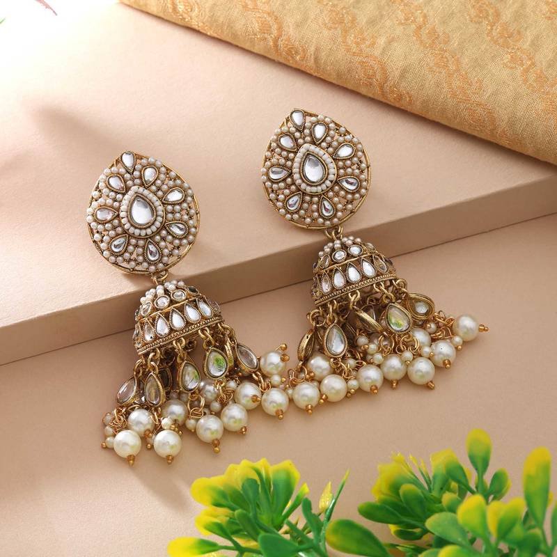 | Product Description | Earring Length: 8.00 Cm X Width: 3.00 Cm | Metal: Alloy With Good Quality Gold Plated | Color: White | Stone: Kundan & Imitation Pearl | Gross Weight: 48.00 Grams | Package Content: 1 Pair Of Earring | Back Finding: Post With Friction Back X Earring Style: Jhumka |