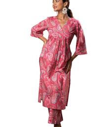 | Product Name | Pink Printed Cotton A Line Flared Kurta Set | |