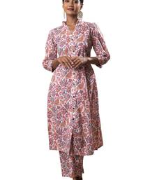 White front slit flared cotton printed kurta set