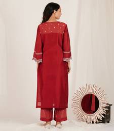 | Product Description | Maroon Embroidered Pearl Work Kurta And Pants With Embroidered Organza Dupatta. |