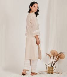 | Product Description | Moonlight Chanderi Cotton Kurta Set With Floral And Pearl Embroidery With Lace Detailing And Embroidered Organza Dupatta. |
