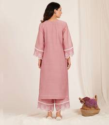 | Product Description | Pink Chanderi Cotton Kurta Set With Floral And Pearl Embroidary With Lace Detailing And Embroidered Organza Dupatta. |